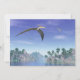 Pteranodon vliegend op eilanden met palmbomen op prachtige dag