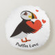 Puffin Love Red Hearts Rond Kussen