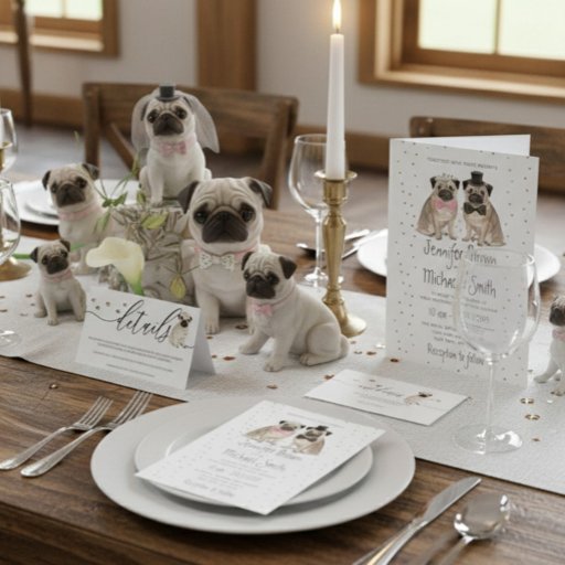 Pug Dog Trouwreactie RSVP KaartjePug Dog Trouwreactie RSVP Kaartje (Achterkant)Pug Dog Trouwreactie RSVP Kaartje (Staand voorkant)