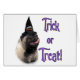 Zal het Trick ors treat zijn deze Halloween? Ons vakantieontwerp heeft uw favoriete hondenras, de met een fawn-coating beklede Pug, met een heksenpet. Voeg dit jaar een beetje 'Hocus Pocus' toe aan All Hallows' Eve!