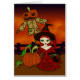 Nachtkaart met afbeelding van heks en het plukken van hun pompoen, perfect voor verjaardagen of halloween.