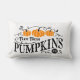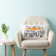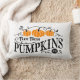 Deze schattige hoedenkussen voorzien van een pompoenpatch-teken dat "Boerderij Fresh Pumpkins" in een decoratief lettertype zegt. Deze kussen zullen een luie aanraking toevoegen aan uw herfst oogstdecor. De achterkant van de kussen heeft een zwart-wit controlepatroon.
