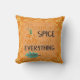 Oranje herfstkussen met een oranje pompoen en blauwgroen blad en tekst die zeggen: "Pompoenkruid en alles aardig."