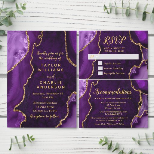Purple and Gold Agate Marble WeddingOntworpen door Kirsty W