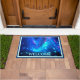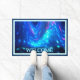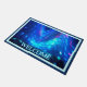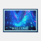 Een roze en blauwe, fractale interpretatie van de Noordelijke Lichten, weergegeven op het oppervlak van het zee. Qaanaaq is een nederzetting in het noorden van Groenland. De tekst, "WELCOME" verschijnt ook.