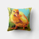 Een schattige, wazige gele eend maakt zijn weg op het lentepad op dit kleurrijke kussen.