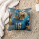 Een leeuw met een footballs uitrusting, met een felle expressie, bereidt zich voor om een football op het veld te gooien terwijl felle stadionlichten het tafereel verlichten