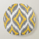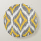 Quatrefoil Ikat patroon in grijs en geel Rond Kussen