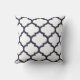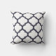 Navy Blue en White Quatrefoil kussen. Gemaakt in de VS van katoen of polyester van de hoogste kwaliteit. Decoratieve werpkussens met een quatrefolietestpatroon in moderne kleuren. Verkrijgbaar in drie formaten, perfect voor de woonkamer, de huiskamer of de slaapkamer.