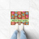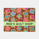 Welkom klanten in uw quilt-winkel of bedrijf met deze kleurrijke deurmat die is gepersonaliseerd met uw bedrijfsnaam. U kunt de naam of andere woorden voor uw deuringang gemakkelijk aanpassen. Deze deurmat is geweldig voor het promoten van uw quilt lappendeken zaken en show die liefde drijven en is ook geweldig voor een quild- of quilt-klasse. De klantgerichte bedrijfsnaam is op een lichte groene strook en kan gemakkelijk aan een ander woord of een naam worden aangepast. Deze originele quilt-kunst combineert favoriete quilt-blokken, zoals een blokhut, sterren en pinkels, plus unieke blokken om een dun design te vormen met levendige en dynamische kleuren op een warme bruine achtergrond. De blokkleuren zijn groen, geel, roze, oranje, rood, en turquoise blauw. Kleine gele bloemen bevinden zich op de achtergrond tussen de blokken. Volledig aanpasbare Quilt art is van stof en quilt ontwerper Phyllis Dobbs en is gemakkelijk om het uw eigen te maken.