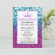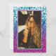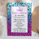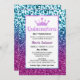 Een modern, en elegant paars en blauw glitter nodigt uit met schijnlichten met een foto aan de achterkant. De viering van Quinceañera met een witte achtergrond en een glitterig paars ombre lijst. Perfect voor een prinses quinceañera, perfect voor haar, de fashionista die van het moderne patroon en de glam houdt.