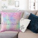 Een trendy regenboogkleurige achtergrond met eenhoorn- en regenboogpastelkleuren in blush pink, paarse, roos gold, mintgroen. Versierd met faux glitter stof, confetti. Personaliseer en voeg een naam toe, geschreven met een modern handgeschreven stijlscript. Paarse letters.