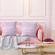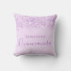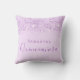 Een kussen voor een Quinceañera, 15-jarige meisjeskamer. Een kleine paarse achtergrond met paarse faux glitter druppels, vlekken. De tekst: Quinceañera wordt in het paars geschreven met een groot modern, met de hand geschreven stijlscript. Pas een naam aan en voeg deze toe.