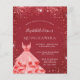 Een moderne, stijlvolle en glamoureuze uitnodiging voor een 15de verjaardag van Quinceañera. Een trendy rood met faux glitter stof en een jurk. De naam wordt geschreven met een modern handgeschreven stijlmanuscript met letters. Pas je partijgegevens aan en voeg deze toe.