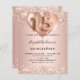 Voor een elegante Quinceañera, 15e verjaardag. Een rozen gouden achtergrond. Versierd met roos goud, roze faux sprankelingen en ballonnen. Personaliseer en voeg een naam en partijgegevens toe. De naam is geschreven met een handgeschreven stijlscript, nummer 15 met ballonachtige lettertypen.
