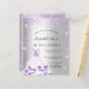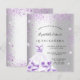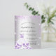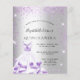 Een moderne, stijlvolle en glamoureuze uitnodiging voor een 15de verjaardag van Quinceañera. Een faux zilvervormende achtergrond met paars faux glitter stof en een jurk. De naam wordt geschreven met een modern handgeschreven stijlmanuscript met letters. Pas je partijgegevens aan en voeg deze toe.