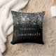 Quinceanera zwarte glitter druppelt zilvermonogram kussen