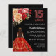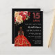 Quinceanera zwarte rode jurk rozen uitnodiging