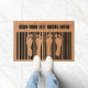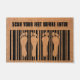 Een bruine deurmat met een zwart barcode ontwerp met voetafdrukken en de tekst Scan Your Feet Before Enter. Welkom uw dierbaren in stijl met deze - Amusante barcode Design - Scan uw voeten voordat u de deurmat binnengaat.