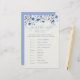 Maak je baby shower leuker met onze 'Boho Dark en Dusty Blue Wildflower' Raad eens bij het prijsspel. Het spel heeft een bohemien-geïnspireerd ontwerp, het mengen van donkere en stoffige blauwe tinten met knapperige witte wilde bloemen, waardoor een leuke en stijlvolle activiteit voor uw gasten om deel te nemen.