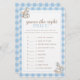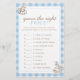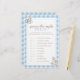Maak de douche van je baby nog spannender met het spel "Guess the Right Price". Deze prachtige spelkaart is voorzien van een charmant waterverf schommelpaard en een klassiek blauw geruite ontwerp, ideaal voor het toevoegen van een vleugje plezier en competitie aan uw baby shower.