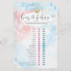 Deze baby shower gamekaart is voorzien van een modern script op roze en blauwe waterverf achtergrond met gouden kroon en spetters, perfect voor een verrassing! Gebruik deze kaart voor je unieke sekse-openbaring.