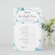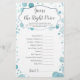 Deze baby shower gamekaart is voorzien van een modern script op een blauwe stippen achtergrond, perfect voor een baby jongen!
