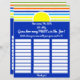 Baby shower Game Raad hoeveel M&M’s in de Jar aanmelden. Bijpassend ontwerp voor Here Comes The Son Summer Stripes Baby shower.Een modern en leuk en kleurrijk ontwerp voor een vrolijk zomerse baby shower. Vrolijk en leuk lettertype voor alle aanpasbare tekstgebieden. Design maakt deel uit van het Summer Stripes Collectie, dat babydoucheuitnodigingen, luierloterij en boekenbibliotheekbehuizingen, feestartikelen, decoraties, geschenken en meer omvat.
