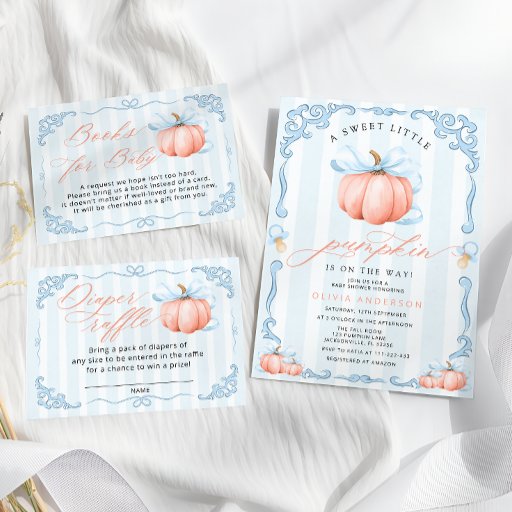 Little Pumpkin Blue Bow Boy Baby ShowerOntworpen door Katsiaryna Lukyanava