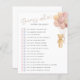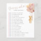 Vier de aanstaande moeder met deze schattige en eenvoudige moderne baby shower "Guess Who" baby shower spelkaart met een waterverf tekening van een schattige teddybeer met blush en beige ballonnen.