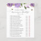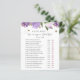 Raad eens wie mama of papa Baby shower spelkaart. Met paarse lila bloemen en wervelende bijen. Overeenkomende items beschikbaar in de Adore Paper Co. winkel in Zazzle.