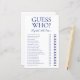 Deze mooie moderne marineblauw raad wie? vrijgezellenfeest spelplaat is perfect voor elke douche. Dit leuke en gemakkelijke spel is zeker om veel te lachen naar elk vrijgezellenfeest. Geef gewoon een vel aan elke gast (vergeet de pennen niet) en laat het plezier beginnen! Je zult verbaasd zijn over hoeveel dingen mensen weten over de bruid en de bruidegom. Om dit spel uw te maken selecteert u deze sjabloon aanpassen en typt u de naam van de bruid en de naam van de bruidegom.