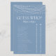 Dit mooie, stoffige blauw licht LGBTQ Raad Who? Het vrijgezellenfeest spelblad is eenvoudig en charmerend - perfect voor elke douche die 2 bruidjes viert. Dit leuke en gemakkelijke spel is zeker om veel gelach mee te brengen naar elke trouwdouche! Geef gewoon een vel aan elke gast (vergeet de pennen niet) en laat het plezier beginnen! Je zult verbaasd zijn over hoeveel dingen mensen weten over de bruiden. In seconden kun je zien hoe je gamepagina eruit zal zien. Selecteer deze Sjabloon gewoon personaliseren en typ in de namen van de briden.