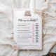 Maak je baby shower leuk en interactief met deze Guess Who? Mama of papa spel! Gasten zullen graag raden welke ouder meer kans heeft om bepaalde dingen te doen die de luierplicht aankunnen, die de beste slaapliedjes zullen zingen of die het meest hunkerden naar snoep tijdens de zwangerschap! Dit vermakelijke spel brengt gelach en vreugde tijdens het vieren van de aanstaande ouders.