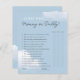 Vier het baby shower met het interactieve spel "Mama of Daddy Guess Who", het creëren van vrolijke herinneringen en opwinding onder de gasten. 14 boeiende vragen waarbij gasten raden wie elke verklaring beschrijft, de vader of moeder. De lichtblauwe hemelwolk 9 design creëer is een minimalistische en charmante ambiance voor het evenement, voor een dag vol liefde, vreugde en gekoesterde momenten. Gebruik de ontwerpgereedschappen om de tekst en de lettertypen aan te passen.