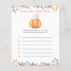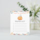 Een beetje pompoen is onderweg. Vier met deze baby cartoon pompoen thema voor baby shower feest! Waterverf schattige cartoon kawaii pompoen met herfstblad (pet) en herfstblad pet. Op de achterzijde van de kaart staan herfstbladeren.
