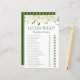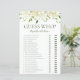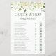 Dit Guess Who? Shower Game vel zal veel plezier en gelach brengen naar je bruidsfeestje! Het daagt de gasten uit om te raden of de bruid of bruidegom als eerste iets deed in hun relatie. De pagina is zowel elegant als charmant. Het mooie ontwerp met multi-getinte witte hortensia's, delicate slierten natuurlijke groene planten in eigentijdse waterverf stijl en bijpassende groene strepen op de achterkant is perfect voor elke boho, rustieke, botanische, bloemige, tuin-, romantische, vintage- of formele bruiloft. Het is een perfect spel voor elk soort bruidsfeestje of koppel cadeaufeestje. Om dit spel je eigen te maken, selecteer je gewoon 'Personaliseer deze sjabloon' en typ je de namen van de bruid en bruidegom in.