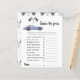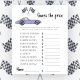 Race auto thema baby shower uitnodigingskaart met waterverf illustraties van een paarse (violette) vintage auto en zwart-wit race vlag. "Race op over voor een baby shower."