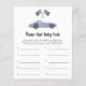 Race auto thema baby shower uitnodigingskaart met waterverf illustraties van een paarse (violette) vintage auto en zwart-wit race vlag. "Race op over voor een baby shower."
