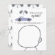 Race auto thema baby shower uitnodigingskaart met waterverf illustraties van een paarse (violette) vintage auto en zwart-wit race vlag. "Race op over voor een baby shower."