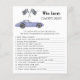 Race auto thema baby shower uitnodigingskaart met waterverf illustraties van een paarse (violette) vintage auto en zwart-wit race vlag. "Race op over voor een baby shower."