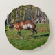 Racing Pinto Paint Stallion op een paardenschaal Rond Kussen
