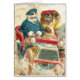 illustratie van twee beren in petten, jassen en bril die hun auto over de weg racen