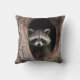 Schattigee jonge wasbeer uitkijkend van de binnenkant van grote boom.