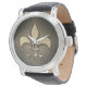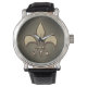 Laat de goede tijden voor je ogen rollen met dit horloge met het afbeelding van een gouden metalstijl Fleur de Lis-symbool in een zwarte en gouden gradiëntachtergrond.