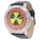 Ontwerp van het radioactieve symbool, zwart-geel, met configureerbare cirkeltekst!