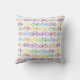 Deze kussen bevatten een herhalend fietspatroon in regenboogkleuren.