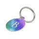 Roze, paarse en blauwgroen regenboogachtergrondverlichting met een aangepaste initiaal voor katten- of hondenmonogram en naam. Typ in uw persoonlijke contactgegevens op de achterkant van de kleurrijke ijllade van de huisdier-ID.