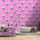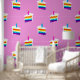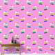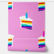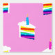 Maak elke dag je verjaardag met verjaardagstaart regenboog met een kaars op roze behang.