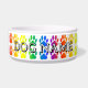 Hondenpootafdrukken in de kleuren van de regenboog. Aangepaste hondennaamkommen. Naam bewerken om aan te passen. Cadeau idee.